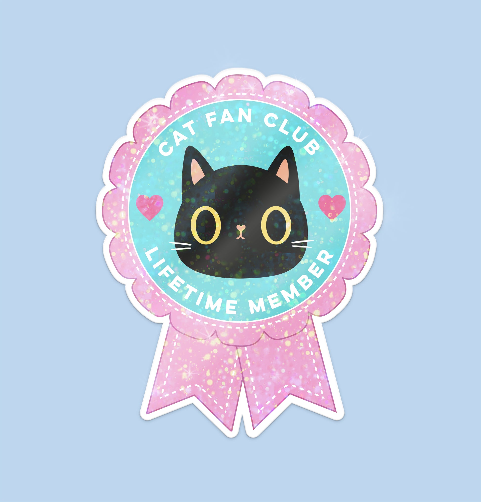 Kawaii Sparkly Rosette Shaped Cat Fan Club Vinyl Sticker - Holographic Sparkle