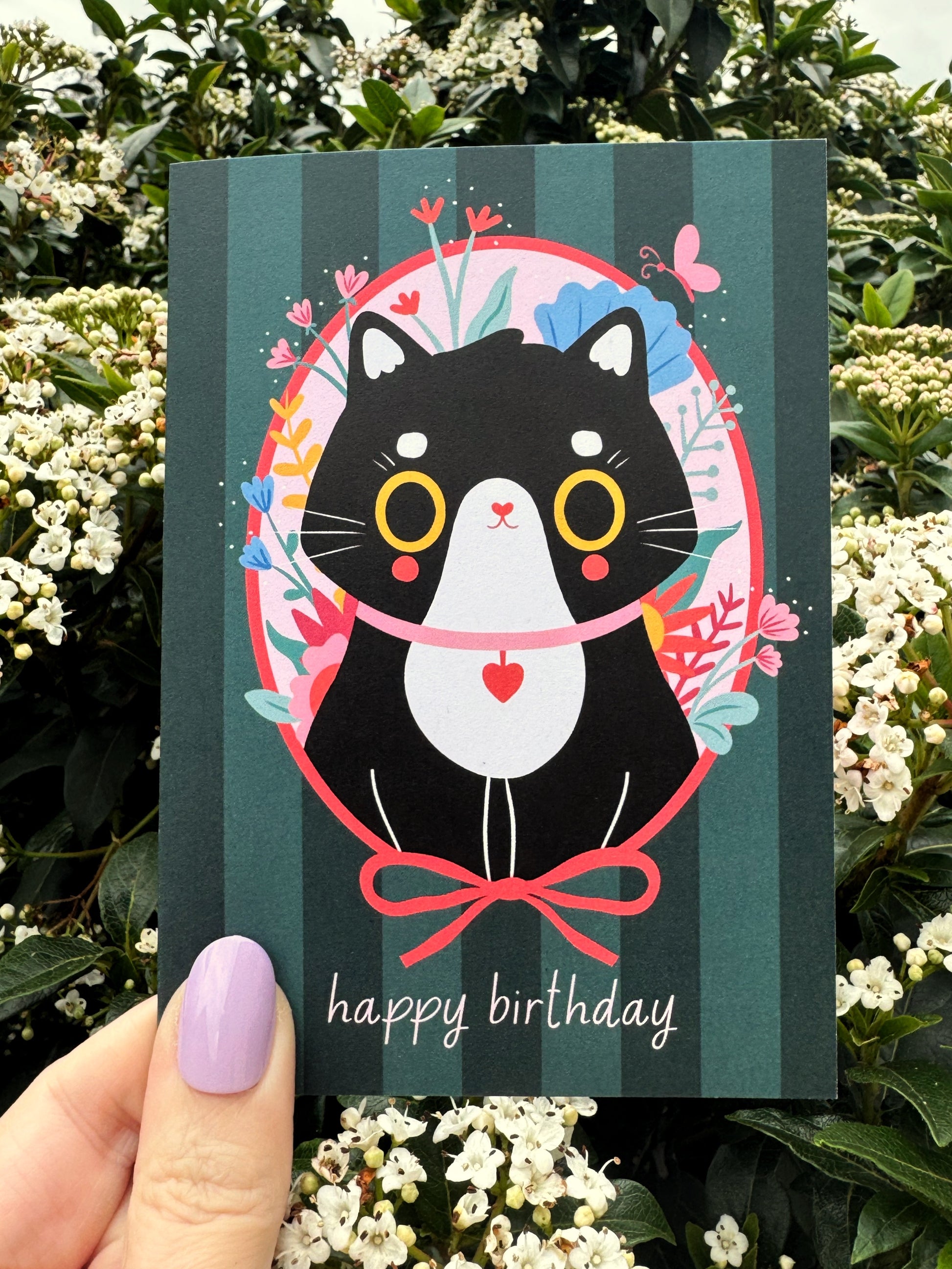 Cat Birthday Card - A6 Tuxedo Cat Card